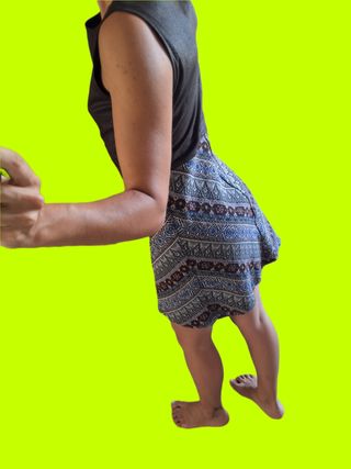 Falda larga de color marrón elástica con volantes. No tiene forro por dentro.