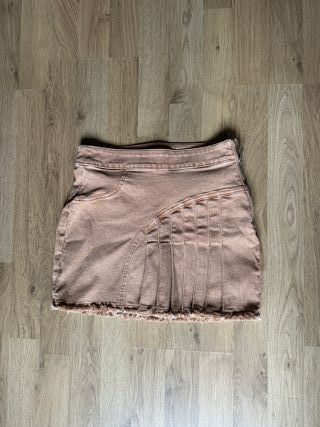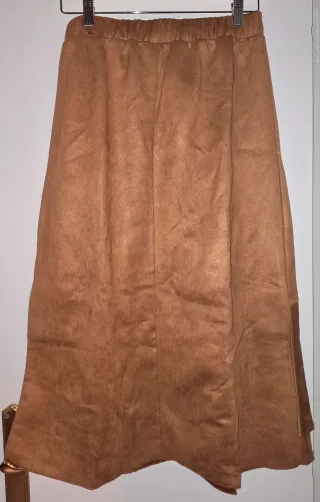 Falda de la marca H&M en color marrón. - Diseño con costuras horizontales. - Material con textura similar al ante.