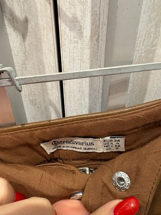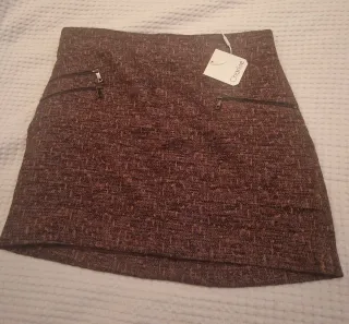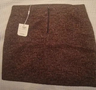 Falda de color marrón oscuro Mide de largo unos 54 cm y de cintura unos 49 cm Con botón detrás y pequeña cremallera , con forro interior Hago envíos por wallapop