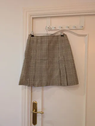 Falda con estampado de cuadros en tonos beige y marrón y verde. Presenta un diseño plisado que le da movimiento. - Más ropa en mi perfil, si te interesan más cosas hago lotes y descuentos por lotes. - Estampado de cuadros - Diseño plisado