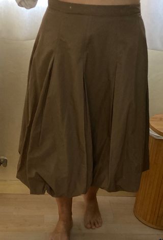 Falda larga de color marrón, talla 36. Cremallera frontal. Forrada. - Diseño elegante y versátil. - Tejido de lino con caída. - Cintura cómoda.