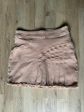 Falda de la marca Pimkie, con un diseño moderno y original. Medida largo 41 y cintura 44 CMS. - Diseño de paneles en diferentes tonos de beige y marrón de antelina.. Recoger barrio de Horta..