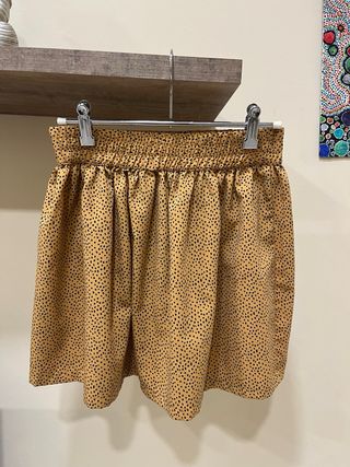 Falda corta con estampado de puntos. - Cintura elástica. - Diseño con vuelo.