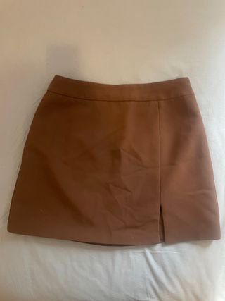 Falda corta marrón con abertura