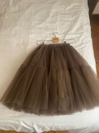 Falda de tul con un bonito corte midi/ por la rodilla. Solo se ha usado una vez - Tejido ligero y vaporoso. - Cintura elástica para mayor comodidad. - Diseño con varias capas de tul.