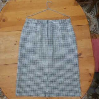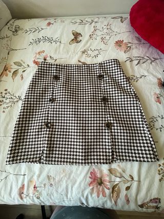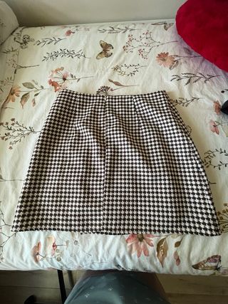 Falda midi con estampado de cuadros en tonos beige y marron, utilizada en muy pocas ocasiones. Talla L
