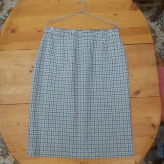 Elegante falda de lana italiana azul y marrón, perfecta para un look sofisticado. - Diseño a cuadros. - Cremallera en la parte trasera. - Abertura en la parte trasera.