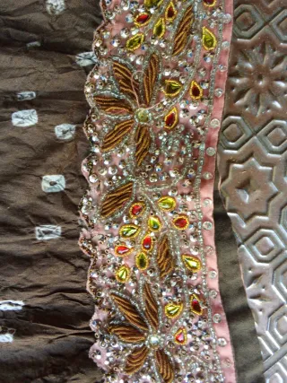 Se vende falda de color marrón con corte acampanado con volantes y diseño de paisley. Largo: 62 cm. En muy buen estado. Talla 38. Perfecta para ocasiones especiales y también para el día a día.