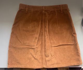 Falda de pana con un diseño moderno y detalles de cremallera. - Material: Pana - Color: Marrón - Cierre de cremallera - Bolsillos delanteros con cremallera - Detalle de botón en bolsillo