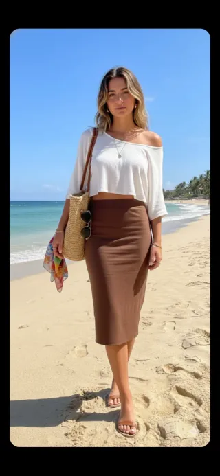 Falda de corte amplio en color marrón, con un diseño moderno y práctico. - Tejido suave y cómodo. - Bolsillos laterales funcionales. - Funda marrón