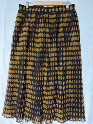 Falda larga plisada con un estampado abstracto en tonos marrones y negros. La cintura es elástica para mayor comodidad. - Diseño plisado. - Estampado de puntos irregulares. - Tejido ligero y fluido.