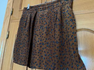 Falda mini con un llamativo estampado. En perfecto estado, sin apenas uso. Le quité la etiqueta porque me molestaba - Diseño mini. - Estampado en tonos marrones y azules. - Cintura con trabillas.