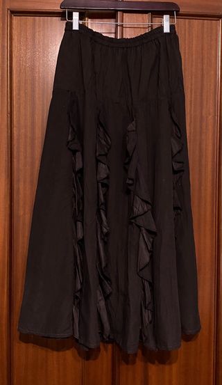 Falda larga midi de color marrón con volantes. - Diseño con volantes. - Largo hasta el tobillo.