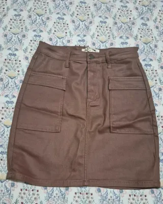 Falda corta de efecto piel en color marrón. Nueva falda La usé una vez. Pero me queda grande. Para M