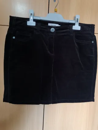 Minifalda de pana en color marrón oscuro. Un básico para tu armario. - Tejido de pana. - Corte minifalda. - Un poco elástica, por lo que queda algo ajustada. - Bolsillos delanteros y traseros. - Usada un par de veces.