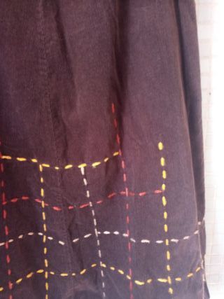 Falda de pana marrón con detalles de terciopelo. Tiene unos pequeños desgarros en una de las partes de pana pero son casi imperceptibles debido a la textura de la pana. - Diseño de varias capas. - Cintura con trabillas. - Bajo con volantes. HAGO DESCUENTOS POR PACKS!!! Pasa por mi armario a echar un vistazo 👀👀 BUSCA MÁS PRENDAS DE LA MISMA TALLA PONIENDO EN EL BUSCADOR EL HASHTAG 🔽🔽🔽🔽🔽🔽 #mhxtallal
