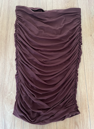 Falda de Shein con un diseño fruncido. - Color marrón. - Tejido elástico.