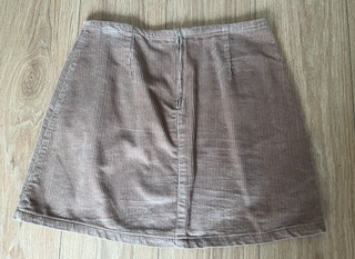 Falda minifalda de pana de corte recto en tono marrón. Diseño con bolsillos delanteros y cierre discreto. ✨ Color: Marron claro ✨ Marca: Primark ✨ Talla: 40 ✨ Medidas: 40cm de cintura, 54cm de cadera, 42cm de largo. ✨ Composicion: 100% algodon