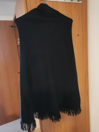 Falda larga de color negro con un diseño moderno. - Detalle de flecos en el bajo. - Tejido suave y agradable al tacto.