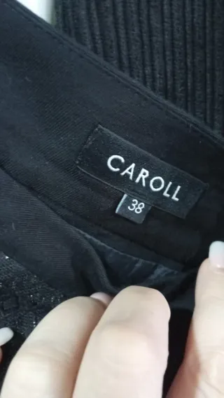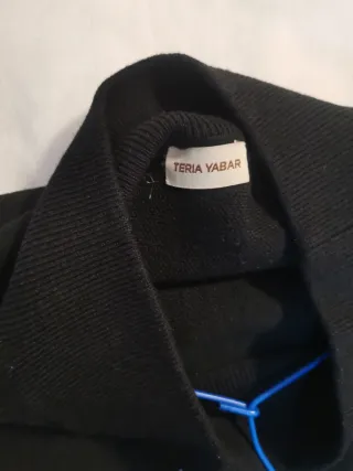 Elegante traje de chaqueta en color negro intenso, con manga 3/4 y falda lápiz de la diseñadora Mª José Ferrera (Sevilla), hecho en España. - Diseño de chaqueta con cierre frontal. - Cierre metálico dorado en la chaqueta. - Falda a juego. - Corte clásico y sofisticado. - Usado para una ocasión especial. - En perfecto estado. Medidas: Chaqueta : Hombros 42cm De sisa a sisa 51cm Cintura 48cm Largo 62cm Largo manga 51cm Falda : Cintura 41cm Cadera 55cm Largo 58cm Hago envíos, también se puede recoger en calle Jaime el conquistador (28045, cerca de los metros Legazpi y Delicias).