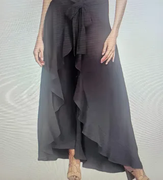 Falda pantalón larga con un diseño elegante y moderno. - Detalle de lazada en la cintura. - Volantes asimétricos. - Tejido ligero y fluido.