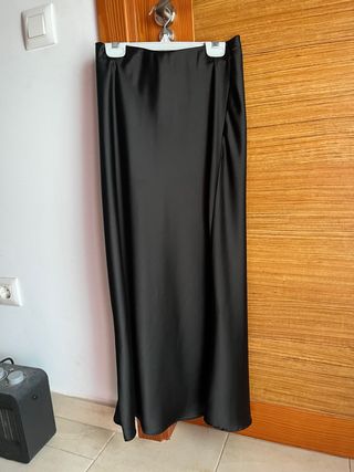 Elegante falda larga de seda. - Diseño liso y fluido. - Tacto suave y sedoso. - Corte simétrico.