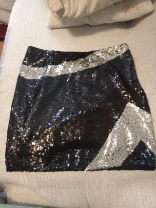Falda de lentejuelas negra y plateada