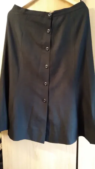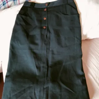 Falda larga de invierno negra con botones delante de buena calidad, largo aprox 74cm esta como nueva solo tiene un poco descosido el forro interior ver ultima foto.( de ahí el precio económico) no negociable. Pone talla 48 pero da menos mejor una 46.