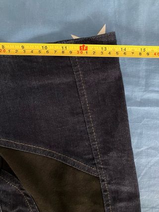 Falda de mujer con diseño de paneles. - Combinación de tela vaquera y tejido negro. - Cremallera lateral para cierre. - ℹ️ Envío por inpost