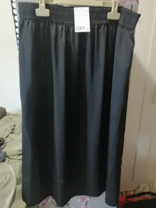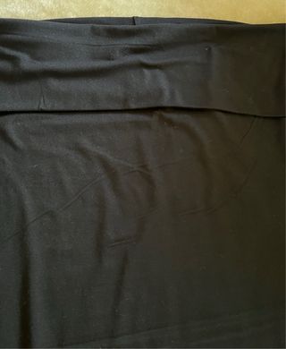 Falda larga de color negro, talla L. Presenta un diseño con un doblez en la cintura para ajustarlo a la altura que se quiera. - Tejido suave y elástico. - Corte recto y fluido. -Cintura elástica.