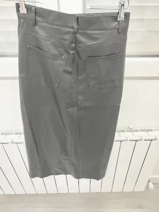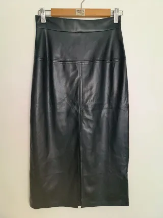 Falda larga de polipiel con un diseño moderno y elegante. - Material: Polipiel - Largo: Largo - Detalle: Abertura frontal Tiene dos marcas en la parte frontal que han salido de colgarla con pinzas al plancharlo igual se quitan