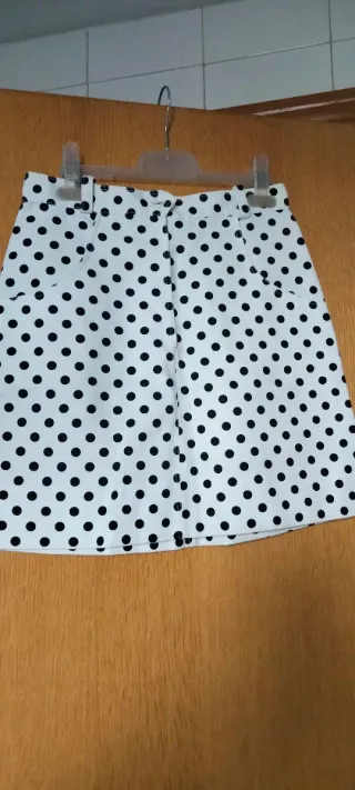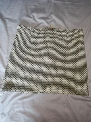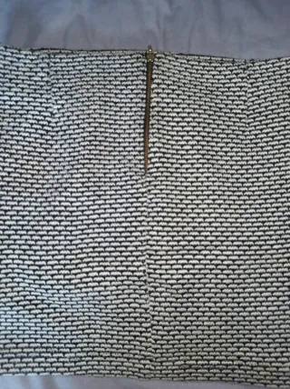 Falda con un diseño moderno y versátil. - Estampado geométrico en blanco y negro. - Cremallera lateral para cierre.