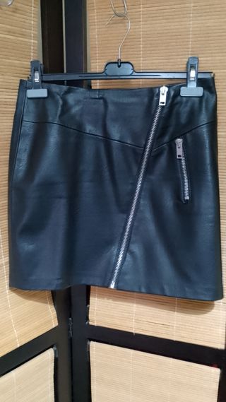 Falda de cuero negra con cremallera
