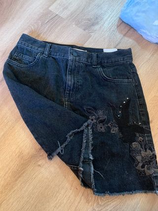 Falda vaquera negra desgastada