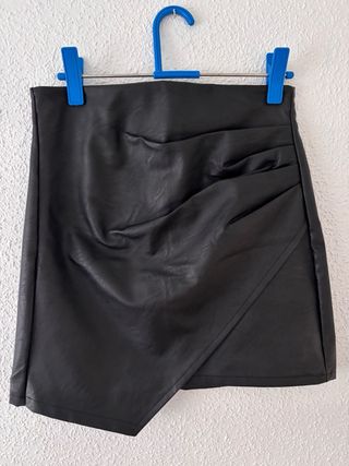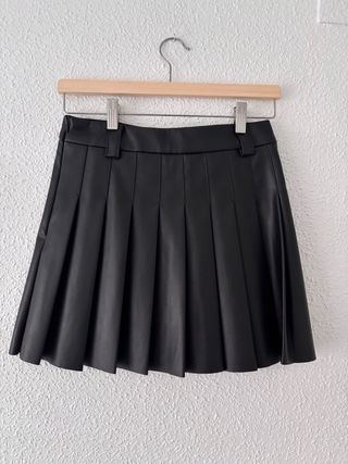 Falda corta de piel sintética con un diseño plisado. - Material: Piel sintética. - Diseño: Plisada. - Largo: Corto.