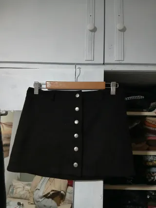Falda corta negra con botones delanteros. - Diseño de cinco bolsillos. - Cierre de botones. - Marca: Stradivarius.