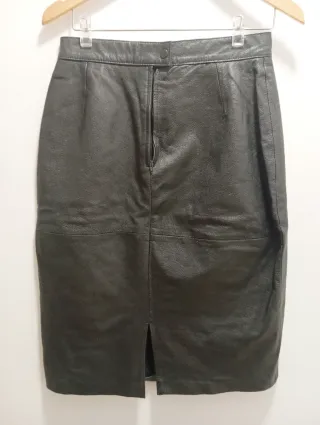 Falda de cuero auténtico en color negro. Un básico versátil para cualquier armario. - Material: Cuero - Color: Negro
