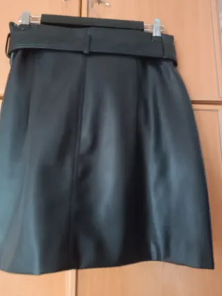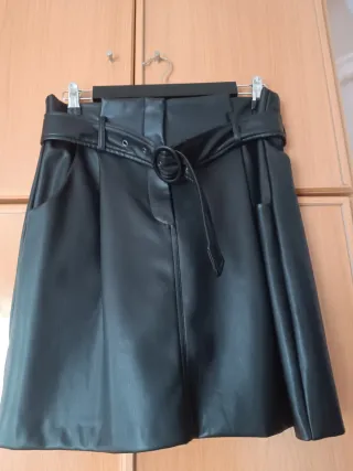 Falda de polipiel con un diseño moderno y elegante. Incluye un cinturón a juego para ajustar a la cintura. - Material: Polipiel. - Diseño con cinturón. - Bolsillos laterales.