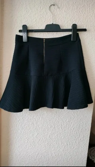 Falda corta negra de Zara con un diseño texturizado y vuelo. - Talla S-M - Tejido con relieve. - Corte acampanado. - Detalle de pliegues en la parte inferior. - Muy favorecedora y cómoda