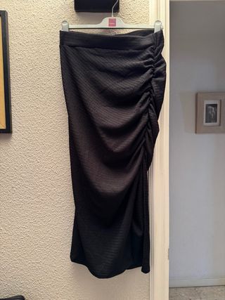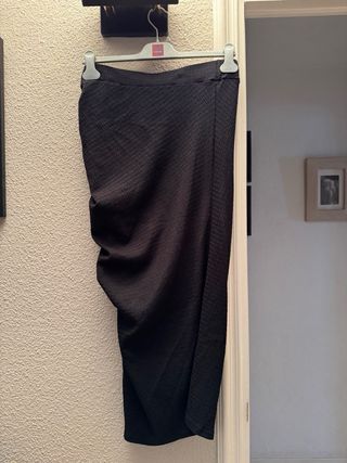 Falda elegante con un diseño moderno. - Detalle de abertura lateral. - Fruncido en un lado para un ajuste favorecedor. - Tejido suave y con caída. Talla S, pero creo que para la talla XS también vale