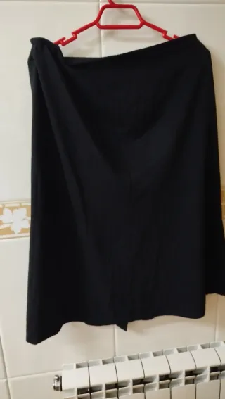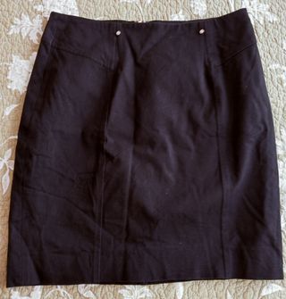 Falda "tipo tubo" en color negro, de la talla 52 de H&M. Llega hasta por debajo de la rodilla aproximadamente. Tiene hebillas pequeñitas por si quieres poner un cinturón fino. Abertura por detrás. Cierre con cremallera y botón trasero. Está como nueva, ya que solo fue usada dos o tres veces. Está arrugada de estar guardada. Plus size, talla grande, xxl, vestido, midi, zara