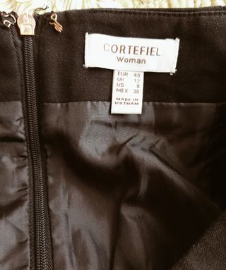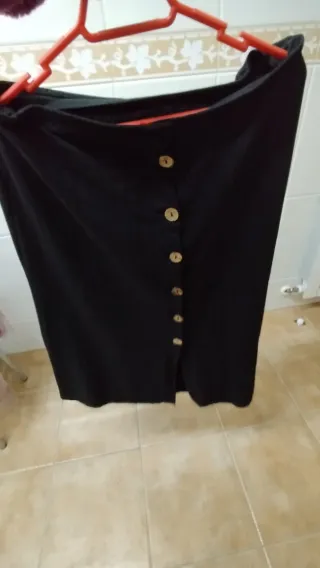 Elegante falda negra de Cortefiel. - Diseño clásico y versátil. - Confeccionada en tejido de calidad. - Detalle de botones decorativos en la cintura.