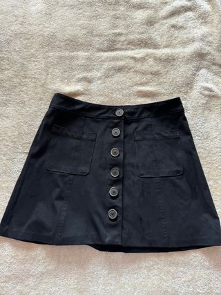Preciosa minifalda negra de tiro alto. Ideal para cualquier ocasión. - Marca: Forever 21 - Talla: M (38/10) - Cierre de botones