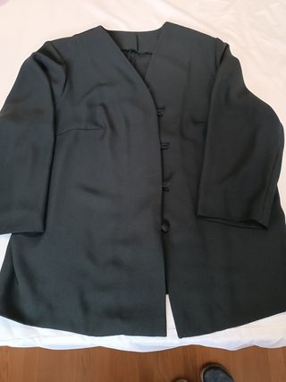 negro, chaqueta media manga, detalles en bolsillos de la falda, botones forrados,falda forrada, tela ligera para verano
