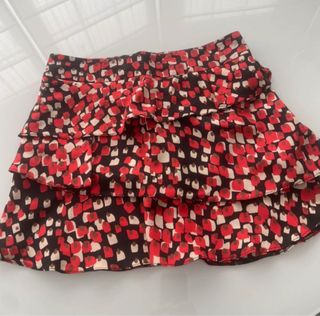 Falda corta talla S en estampado rojo y negro con volantes. Preciosa. Impecable