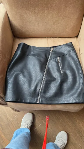 Falda de cuero negra talla L