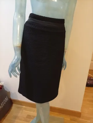 Elegante falda hecha en España . Negra con un diseño texturizado que le da un toque especial. Es abullonada. Perfecto estado con forro. Queda por encima de la rodilla. Es una M, pero vale para S bien a la cadera - Diseño con textura floral. - Corte que favorece la figura. - Ideal para ocasiones especiales o para vestir.