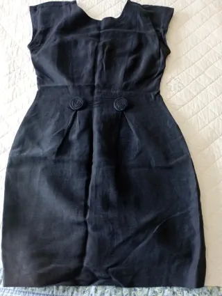 Elegante conjunto de chaqueta y vestido. Usado 2 veces. Azul marino.Talla pequeño. - Chaqueta de corte clásico. - Vestido de línea recta.