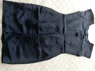 Vestido negro sin tirantes, con un diseño elegante y favorecedor. - Corte ceñido en la cintura. - Falda con vuelo y pliegues. - Bolsillos laterales. Al subirlo se rasgo un poco