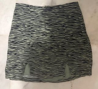 Falda corta con estampado de cebra. - Diseño con aberturas laterales. - Cintura alta.